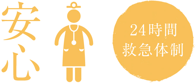 近接する救急指定病院にて体調不良になっても24時間365日いつでも受診できます。